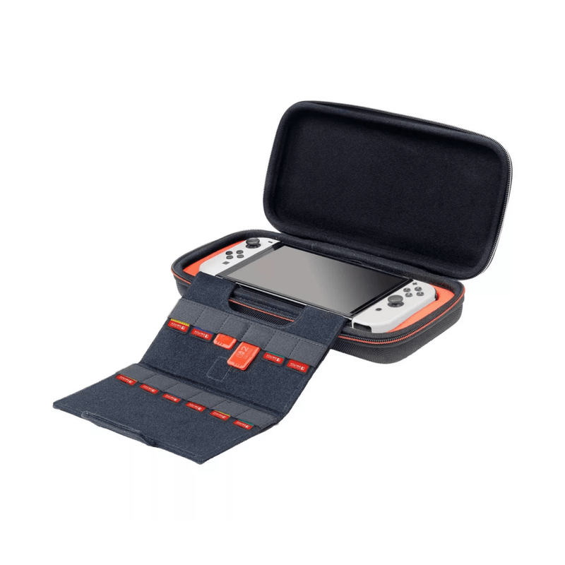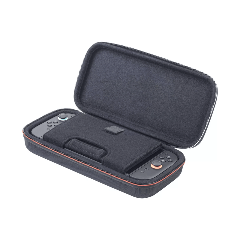 Diseño resistente y divertidoFabricado en nylon de alta calidad, este estuche protege tu consola contra golpes y caídas mientras transportas tu mundo gamer. Su exterior firme y elegante asegura durabilidad, y su interior acolchado mantiene tus accesorios en orden.
