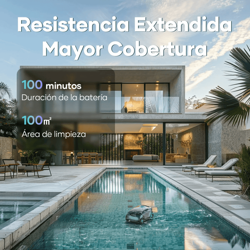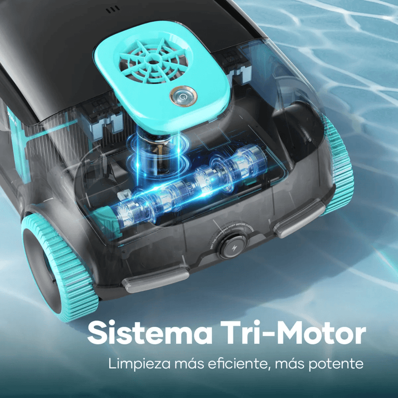 Tri-Motor System para máxima eficienciaEquipado con 2 motores de tracción y 1 motor de bombeo, alcanza 3600 GPH (13.600 LPH), asegurando una limpieza rápida y completa. Su batería recargable integrada ofrece hasta 100 minutos de autonomía con solo 3 horas de carga, para que no tengas que preocuparte por interrupciones.