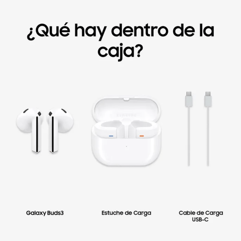 Incluye | Audífonos Samsung Galaxy Buds 3 Estuche de carga Cable de carga USB-C Almohadillas (ear tips) |