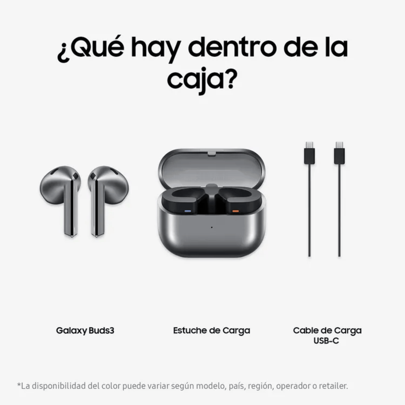 Incluye | Audífonos Samsung Galaxy Buds 3 Estuche de carga Cable de carga USB-C Almohadillas (ear tips) |