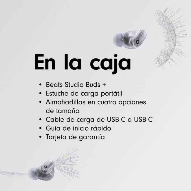 ¿Te imaginas escuchar tu música favorita con total nitidez, sin ruidos y con máxima comodidad? Con los Beats Studio Buds +, cada detalle cuenta. Estos audífonos in-ear inalámbricos fueron diseñados para que vivas una experiencia sonora envolvente estés donde estés, sin cables ni interrupciones.