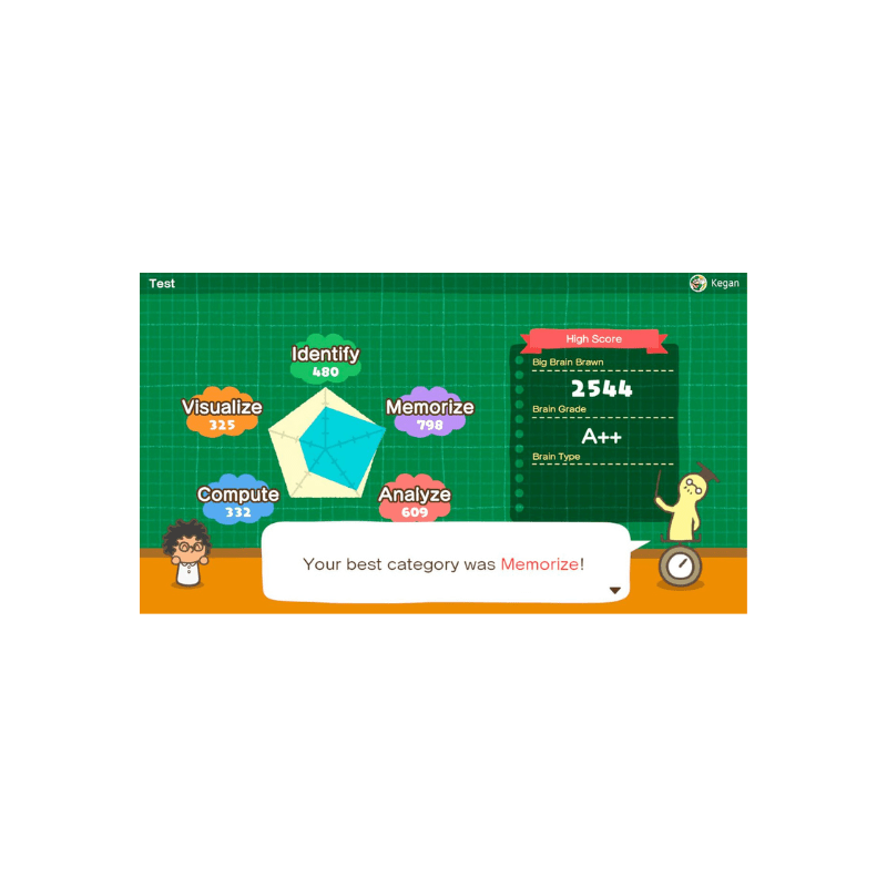 Enfréntate en batallas y descubre quién tiene el cerebro más agudo en Big Brain Academy™: Brain vs. Brain para Nintendo Switch™. Supérate en una variedad de ejercicios desafiantes, desde recordar secuencias de números hasta guiar trenes. Compite con hasta 4 amigos y familiares en una batalla cerebral llena de diversión. ¿Podrás alcanzar la puntuación más alta?
