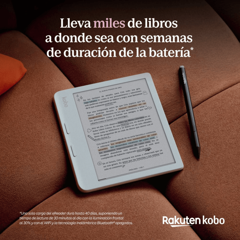Lleva la magia a tus márgenes haciendo notas en tus páginas, organizando tus ideas y resaltando frases inspiradoras, todo a color. Con el lápiz digital Kobo Stylus 2, puedes adentrarte en tus historias favoritas marcando momentos significativos y destacando pasajes poderosos en los eBooks que amas. Este eReader te ofrece una experiencia única, donde cada libro cobra vida con colores vibrantes, permitiéndote interactuar de una manera más profunda y personalizada. Siente la diferencia y redescubre el placer de leer, mientras das rienda suelta a tu creatividad y pasión por la lectura.