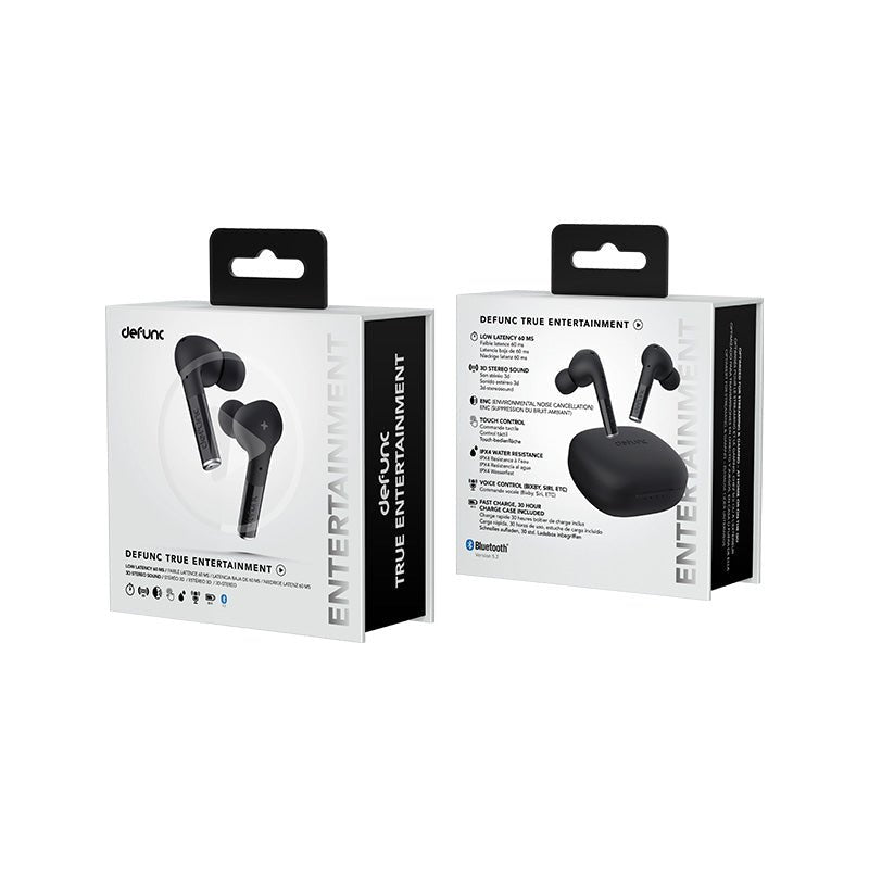 Con los auriculares inalámbricos Defunc TRUE ENTERTAINMENT, experimenta un sonido estéreo 3D que lleva tus series, películas y juegos a un nuevo nivel de realismo. La baja latencia de 60 ms garantiza una sincronización perfecta entre el audio y la imagen para que no te pierdas ni un detalle.