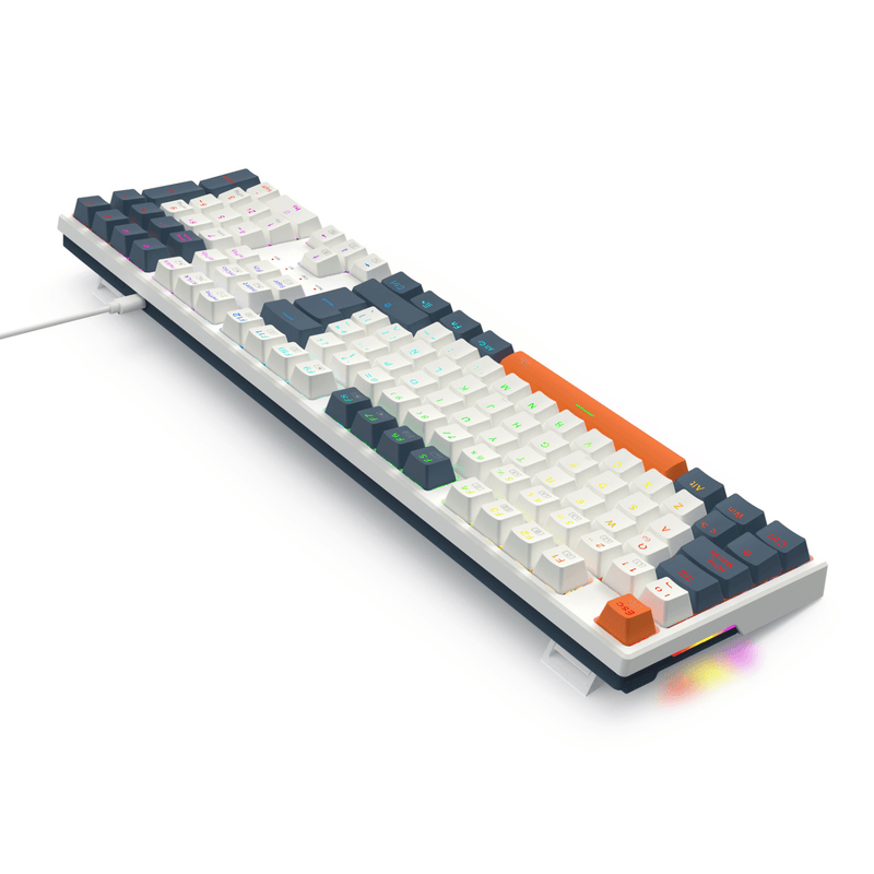 Comodidad inteligente, diseño full size108 teclas con distribución en español, keycaps mixtos, espuma absorbente de sonido y materiales resistentes. Lo tuyo puede ser jugar, trabajar o streamear; este teclado lo aguanta todo.