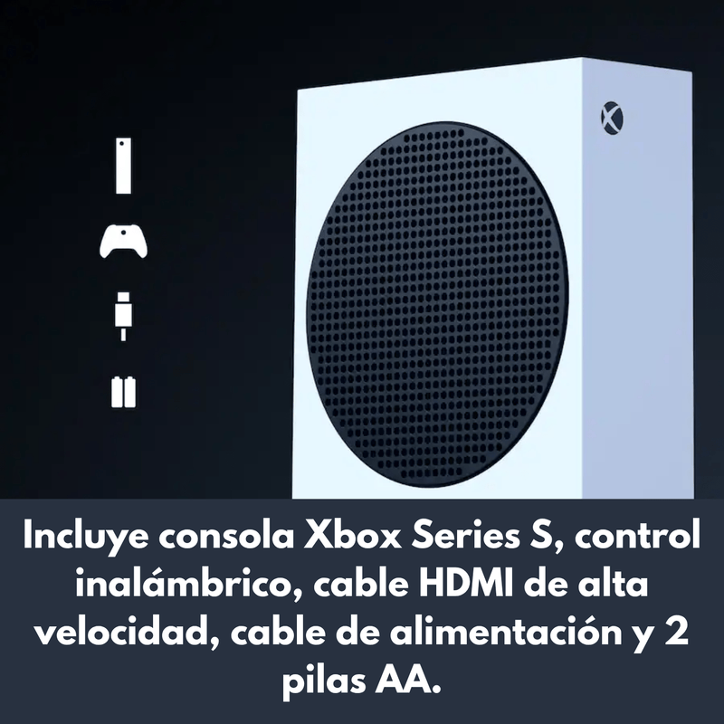 Qué incluye (contenido de la caja) | 1 Consola Xbox Series S 1 TB SSD 1 Control inalámbrico Xbox Cable HDMI Cable de alimentación 2 baterías AA |