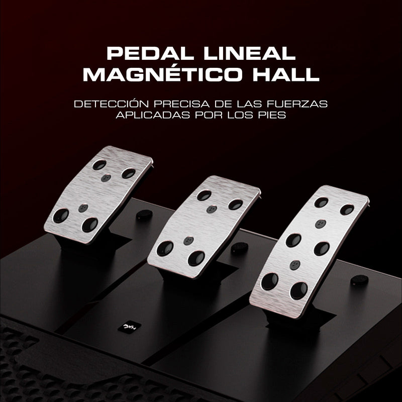 Pedalera Hall + Palanca en H 6+1Incluye acelerador, freno y embrague ajustables, junto a palanca de cambios manual 6+1 con función de freno de mano y botones personalizables. Ideal para simuladores de camión y carreras realistas.
