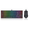 Teclado mecánico compacto RGBFormato tenkeyless con switches mecánicos durables que entregan respuesta rápida y retroiluminación RGB para una experiencia gamer inmersiva.