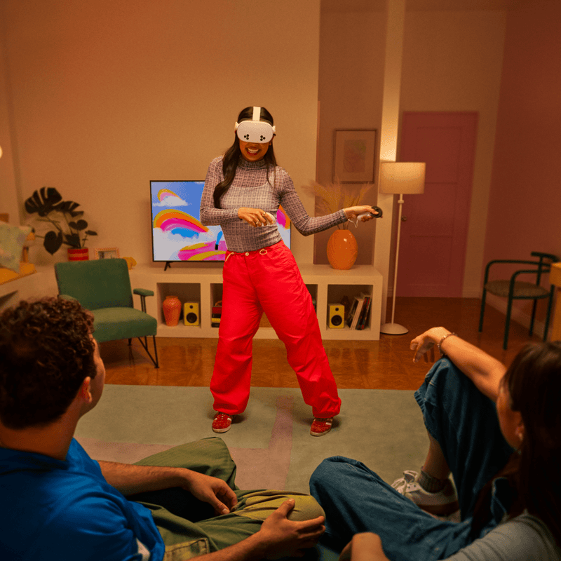 Convierte cualquier habitación en tu escenario personal. Ya sea para entrenar, explorar mundos virtuales o pasar tiempo con tus amigos en Meta Horizon, el Quest 3S te conecta con todo… sin salir de casa.
